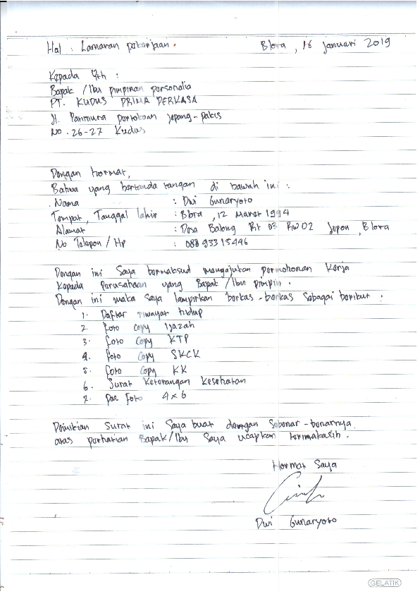 Contoh cv lamaran kerja rumah makan.